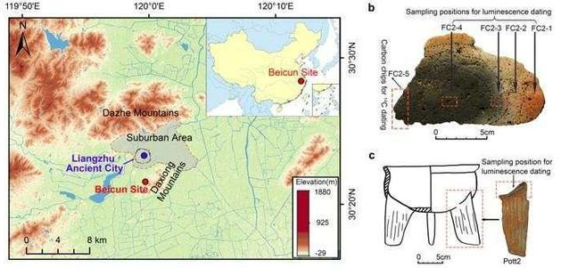 为确定北村遗址的绝对年代、探索良渚古城外围遗址的相互关系,研究人员首次发现并确认了受热考古材料中石英的中组分特殊信号与600—800℃加热历史的相关性。针对北村遗址采用了独立的释光测年程序,基于R语言统计模型,测算了陶片与红烧土的释光年代,其结果与烧土中分离出的微量灼烧炭屑的碳十四年代一致。