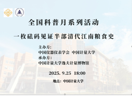 在首个全国科普月期间,计量博物馆于9月25日特邀知名度量衡收藏爱好者顾宇明先生,在翔宇楼105作了题为《一枚砝码见证半部清代江南粮食史—— 苏州府康熙拾捌年砝码及“曹法”与“曹平”考》的专题讲座,为师生及科普爱好者解读古代经济与计量文明,成为兼具学术性与趣味性的科普范例。